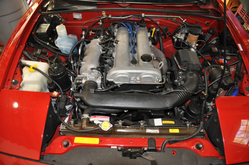 I have owned two NAs.  I keep coming back to the original Miata.  This car is an excellent example of the first generation Miata. It was a one owner car. The owner lived in the same MA town as me.  It was always garaged and under a car cover and driven on weekends... for almost 21 years. Its original classic red paint has survived so well and is in absolutely like-new condition... look at the photo gallery below for the reflections in the paint.  The engine bay looks like a 3-4 year old car. And the black cloth seat interior matches the condition of the rest of the car.  The cockpit has had two important upgrades. The first is the replacement of the OEM center console with the IL Motorsport redesigned center console.  It is a real improvement over the original OEM console.  The other upgrade is the replacement of the old radio with a modern double-DIN touchscreen radio with modern hands-free phone support.